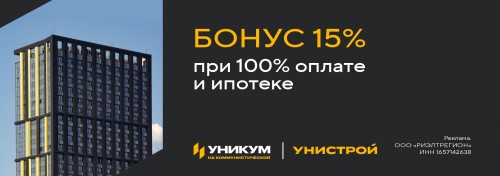 Бонус 15% на покупку квартиры при 100% оплате и ипотеке